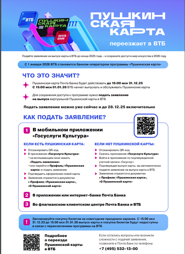 «Пушкинская карта» – это виртуальная банковская карта, которая выпускается на территории страны единым эмитентом АО «Почта Банк». Она дает возможность за счет средств государства посещать культурные мероприятия (театры, кинотеатры, музеи, филармонии, выставки) по всей стране.