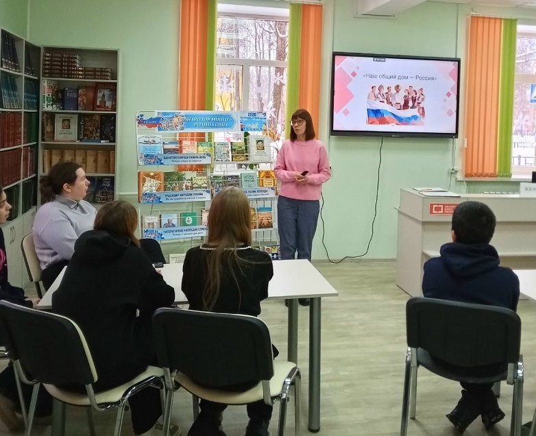 26 января в Ярцевской центральной библиотеке для студентов Ярцевского индустриального техникума прошла праздничная программа «Наш общий дом – Россия», которая была посвящена открытию Года единства народов России.