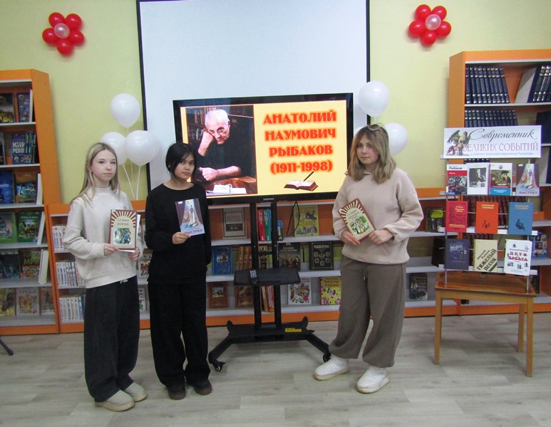 21 и 22 января в центре по библиотечной работе с детьми для семиклассников средней школы №2 и шестиклассников первой средней школы прошел  увлекательный вояж по книгам «Тайны и приключения Анатолия Рыбакова», посвященный 115-летию со дня рождения писателя.