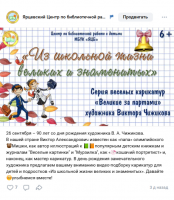 26 сентября - 90 лет со дня рождения художника В.А.Чижикова. Виктор Александрович известен как «папа» олимпийского Мишки, автор иллюстраций к популярным детским книжкам и журналам "Веселые картинки" и "Мурзилка", как «кошачий портретист» и, наконец, мастер карикатур. В день рождения художника центр по библиотечной работе с детьми разместил на своих страницах в социальных сетях ВКонтакте https://vk.com/yardetlib и Одноклассники https://ok.ru/yardetlib видео-подборку карикатур для детей и подростков «Из школьной жизни великих и знаменитых».